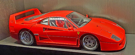 För drygt 30 år sedan fick jag av min fru, en byggsats i metall till en Ferarri F40 av fabrikat Pocher. Ska fixa en bättre bild vid tillfälle. En maffig och tung modell är det. Dryga halvmetern lång.