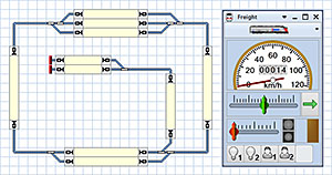 Programvaran Traincontroller (TC) har jag i första hand för att sätta tågvägar i magasinet och på stationens tågspår. Alla växlar och signaler ska styras via TC men vissa växlar på sidospår kan jag även styra med multiMAUS. Tanken är också att tåg skall köras automatiskt och själv kunna parkera i magasinet. |