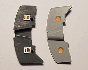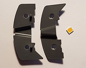 De varmvita lysdioderna ska limmas på ovansidan.