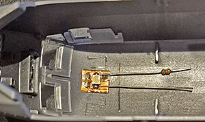 En lysdiod i hyttaket på drivenheten blir det också. Styrs av ledig utgång på dekodern.