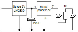 För att få blinkande slutsignal kopplar jag detta till kondensatorn. Blinket har mjukt till- och frånslag. |