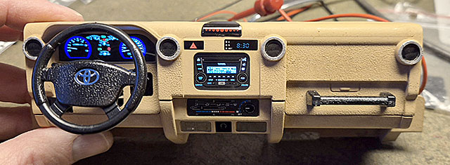 Just färdigställt instrumentbrädan med belysning i mätare och radio.
